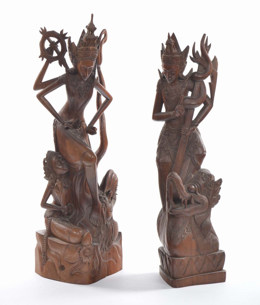 Due sculture in legno raffiguranti figure orientali