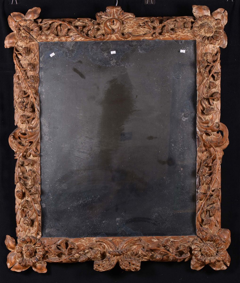 Specchiera in legno intagliato a motivo vegetale