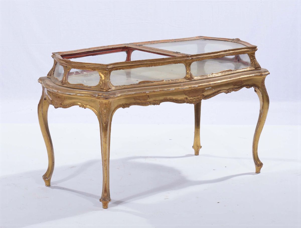 Vetrina bassa in legno intagliato e dorato