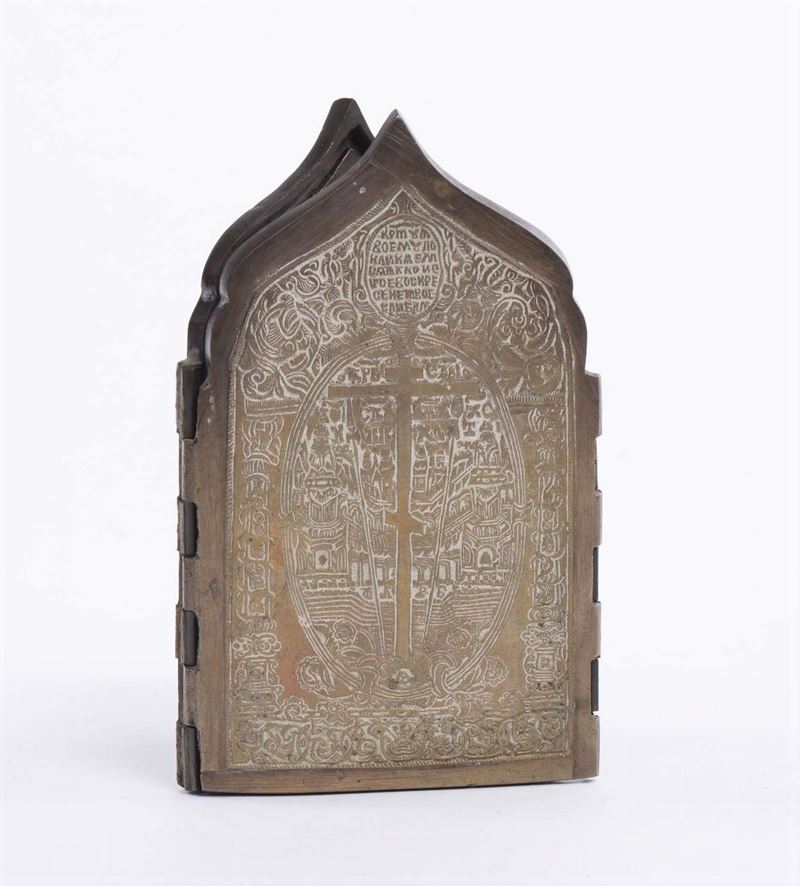 Polittico in bronzo con tracce di smalti