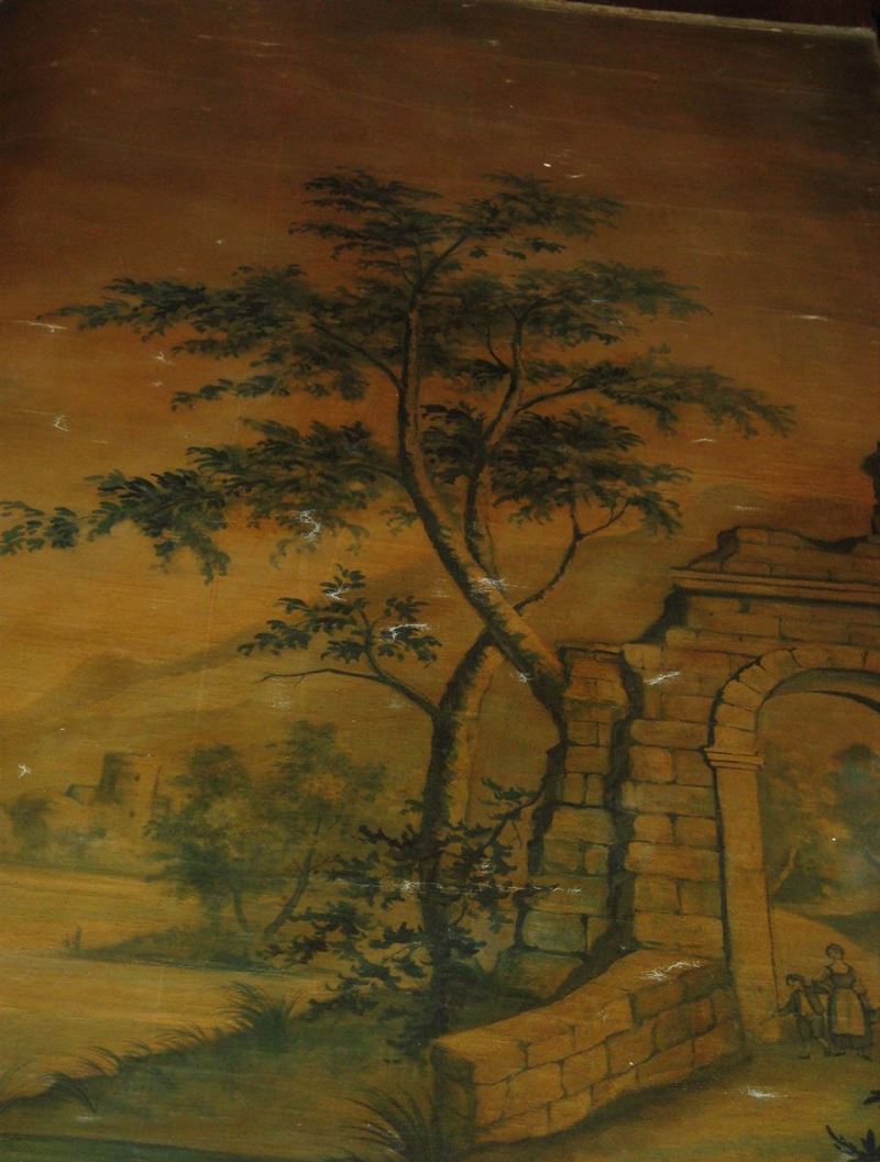 Pannello su tela raffigurante paesaggio con architetture