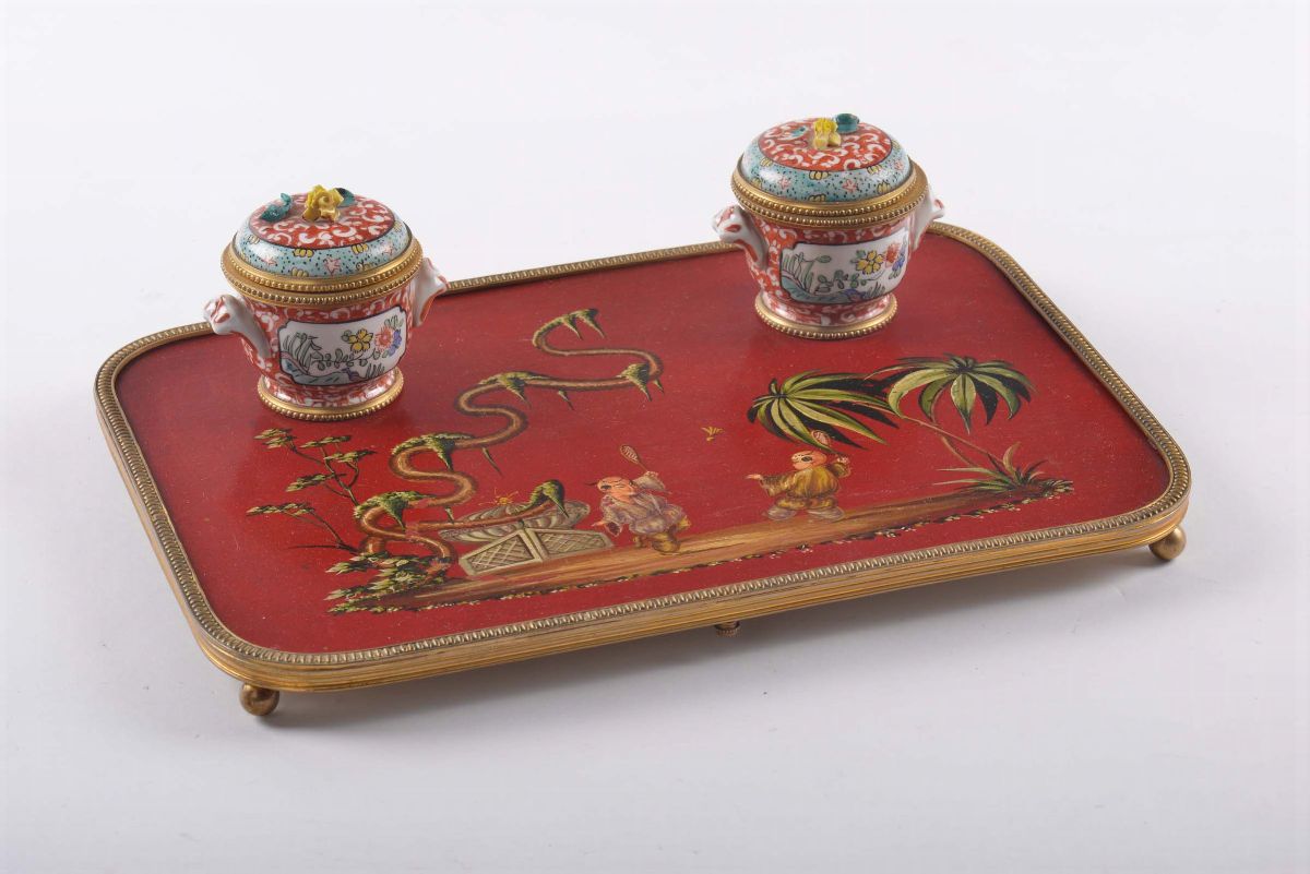 Calamaio con due vaschette in porcellana