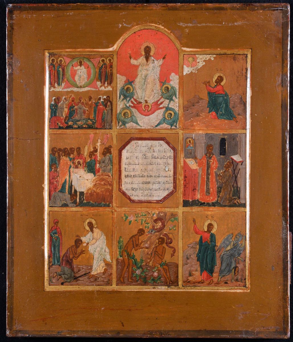 Icona raffigurante nove scene bibliche, XIX secolo