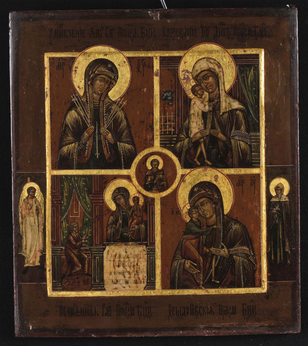 Icona quadripartita raffigurante le Quattro Madonne, Russia XIX secolo