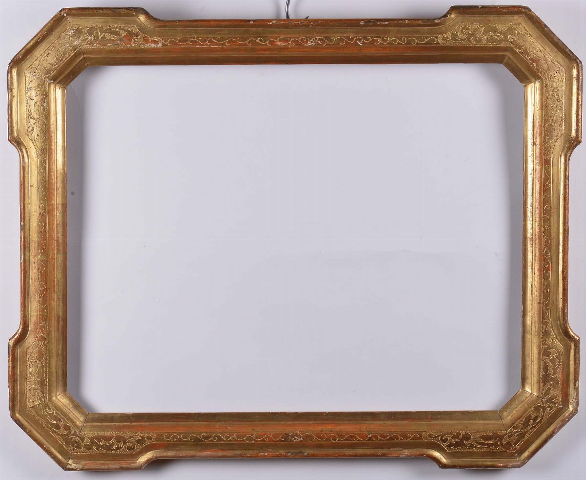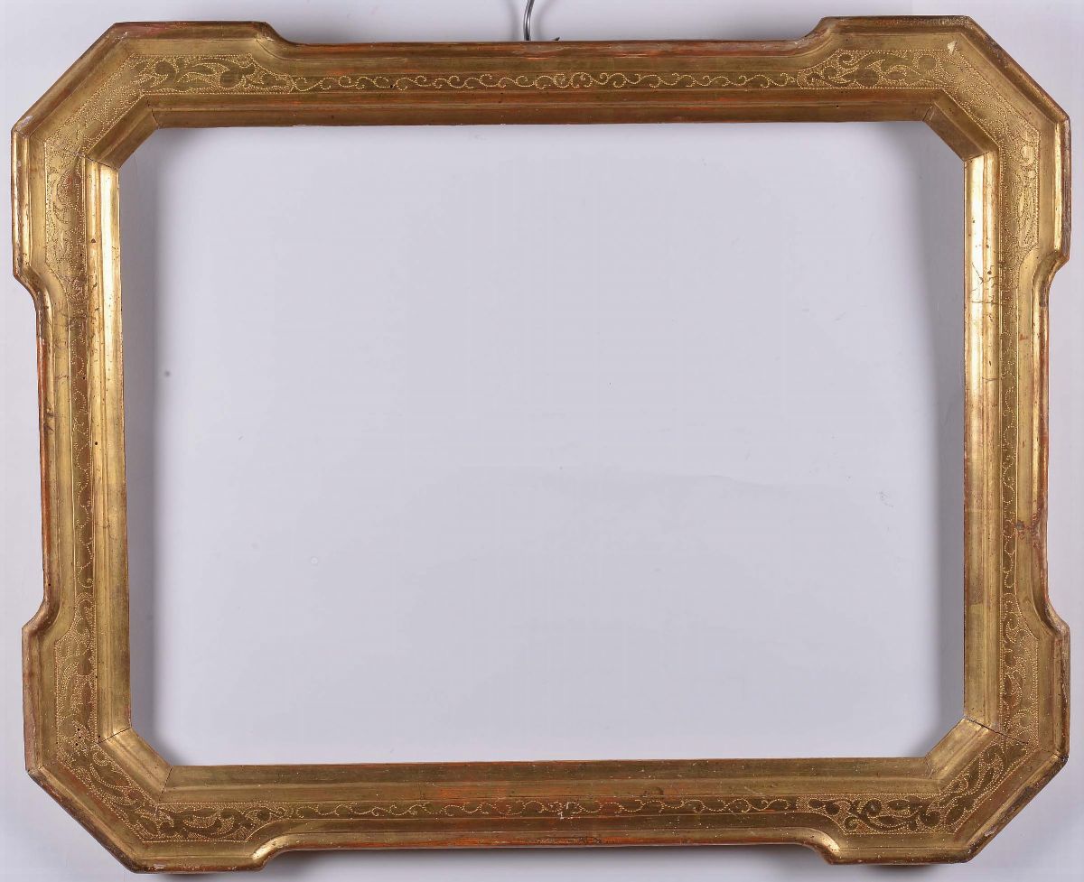 Coppia di cornici a vassoio bulinate e dorate