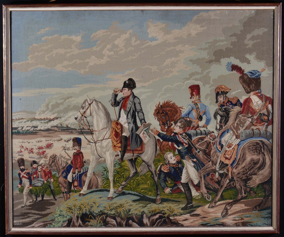 Ricamo raffigurante Napoleone a cavallo con soldati, XIX secolo