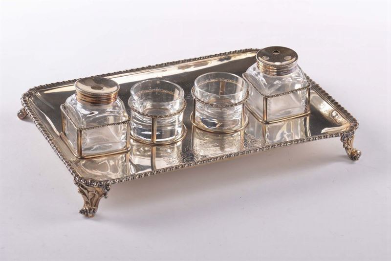composto da calamaio, bugia, vasi con coperchio e centrotavola