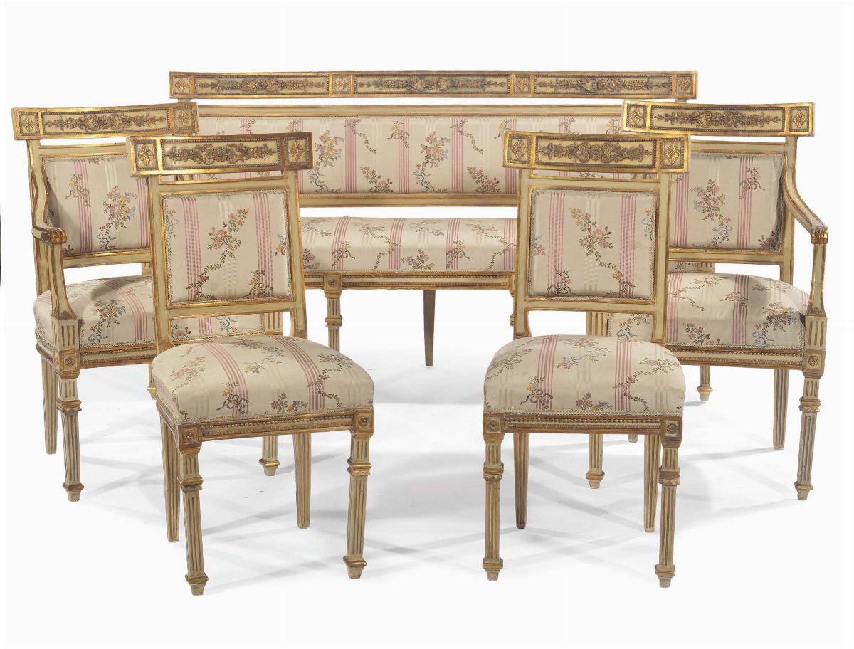 Salotto in stile Luigi XVI in legno intagliato e dorato, XIX secolo