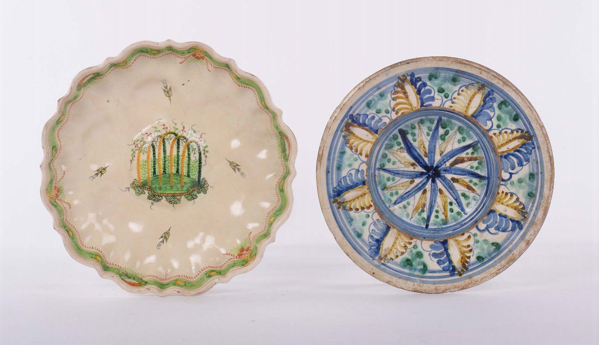 Lotto di crespina in maiolica di Bassano e piatto fondo