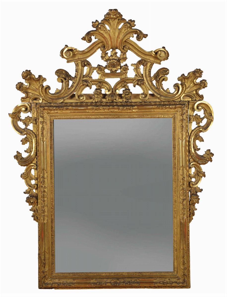 Specchiera Luigi XV in legno intagliato e dorato, Veneto XVIII secolo