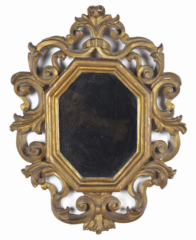 Coppia di specchierine Luigi XV in legno intagliato e dorato, XVIII secolo
