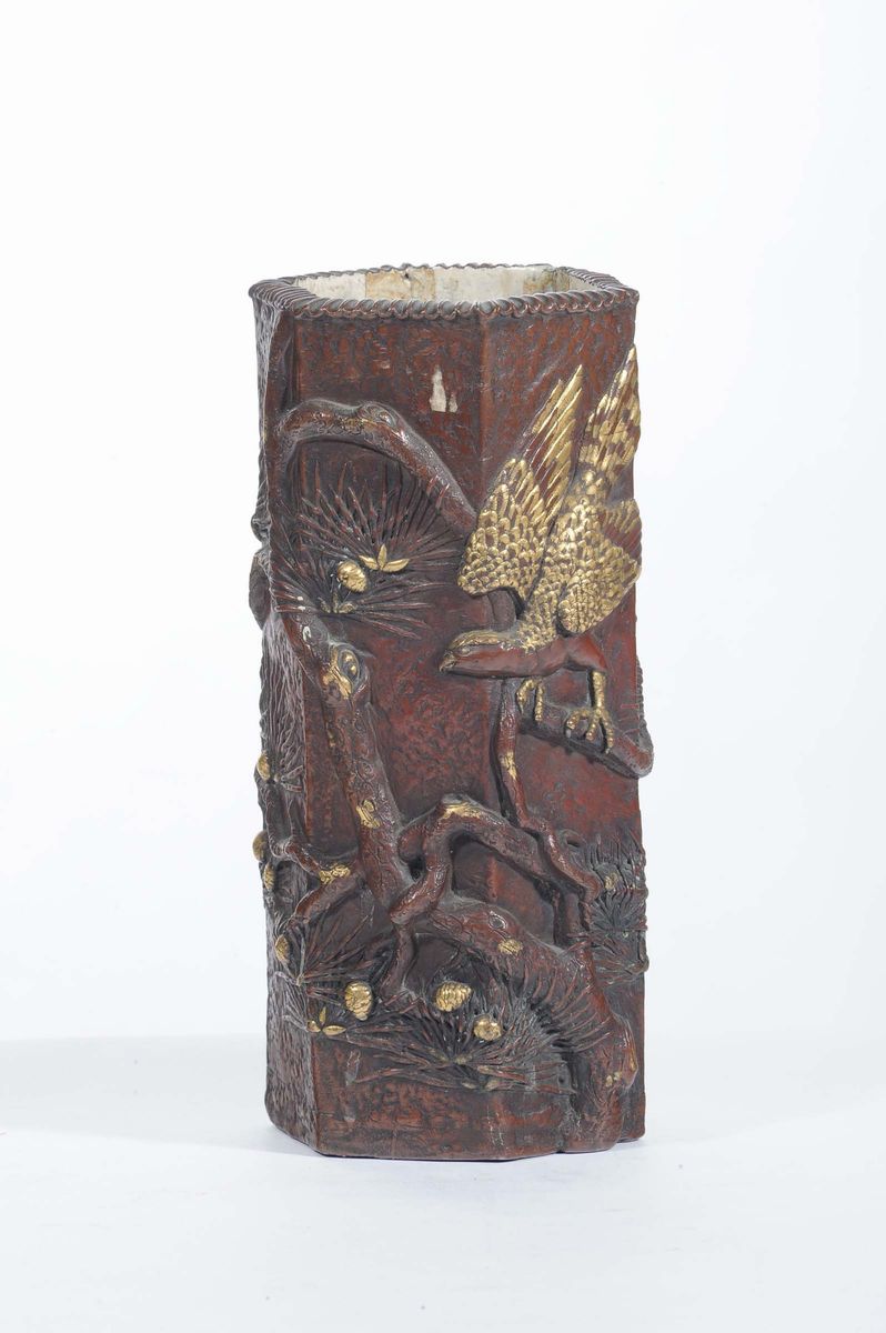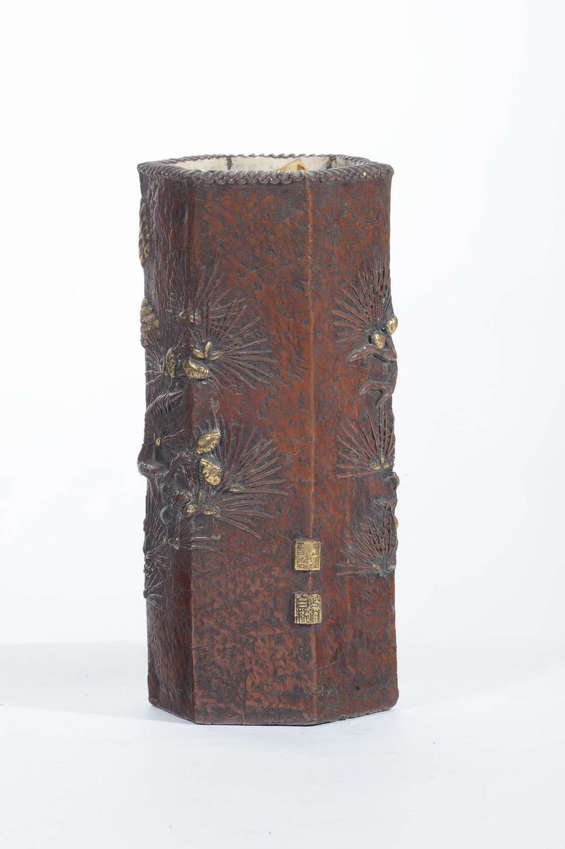 Vaso orientale in porcellana a sezione esagonale
