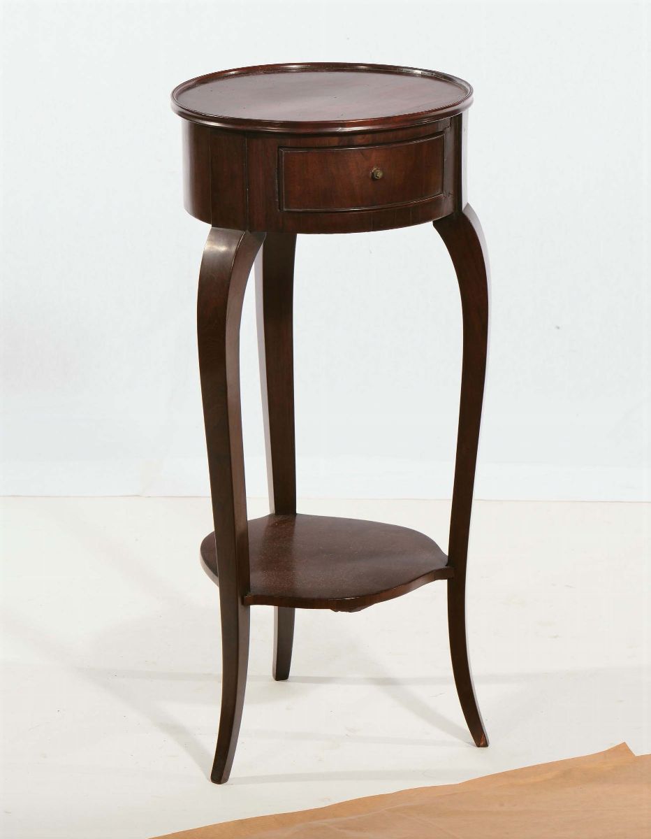 Piccolo tavolo da salotto a forma di tamburo, Francia inizio XIX secolo