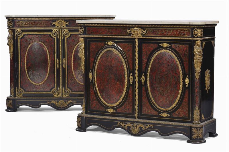 Coppia di credenze boulle a due ante, XIX secolo