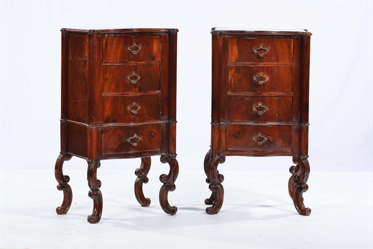 fronte sagomato a quattro cassetti, gambe a doppia voluta, cm 42x29x79