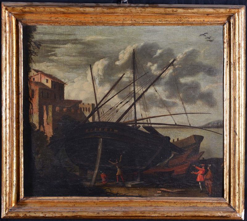 Agostino Tassi (1566/80-1644), attribuito a Porto con barca secca