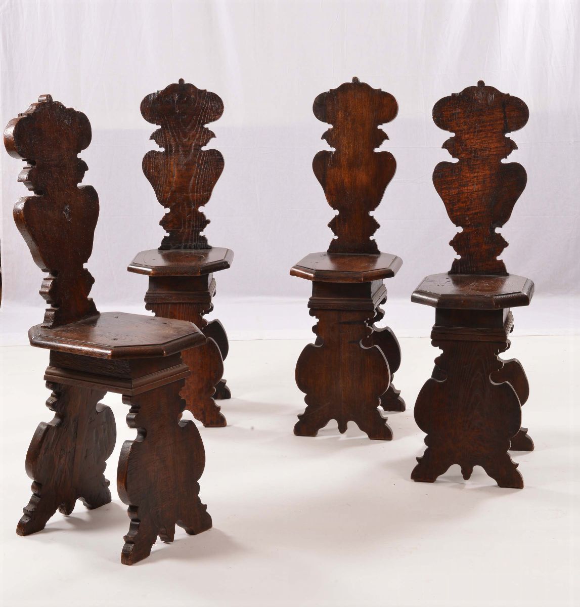 Quattro sedie rustiche in noce