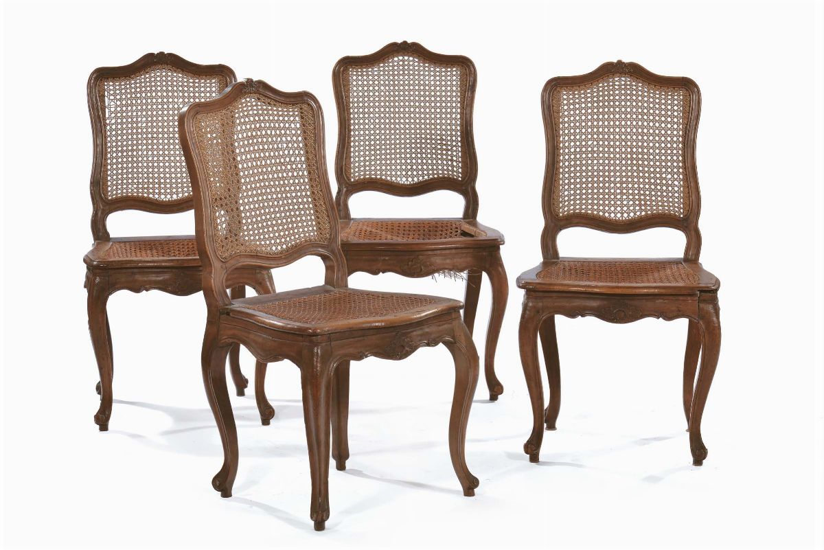 Quattro sedie luigi XV in noce, Genova XVIII secolo