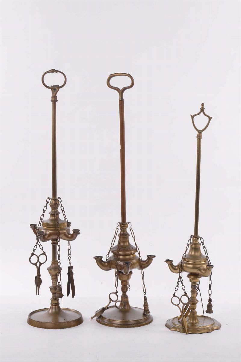 Tre lampade fiorentine diverse in ottone