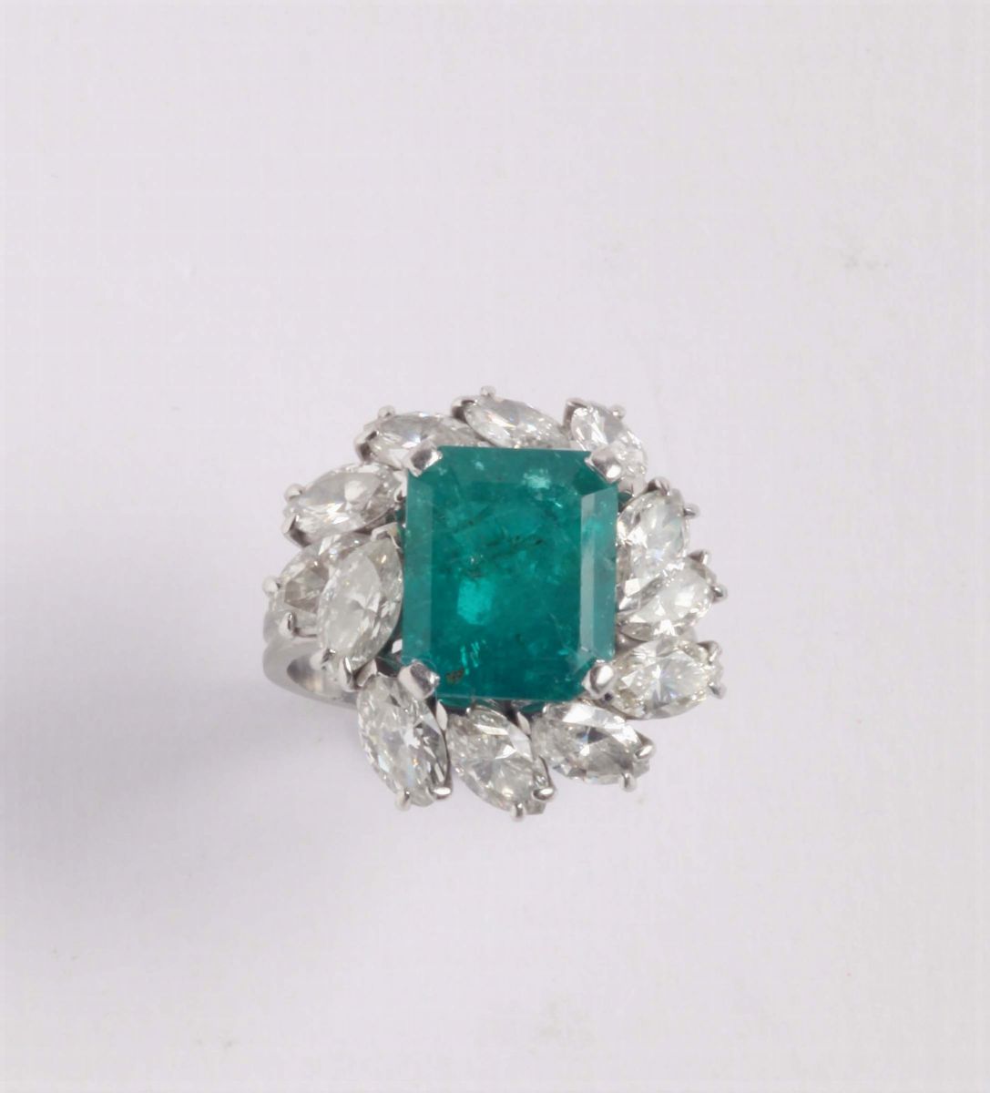 Anello con smeraldo e diamanti taglio fantasia