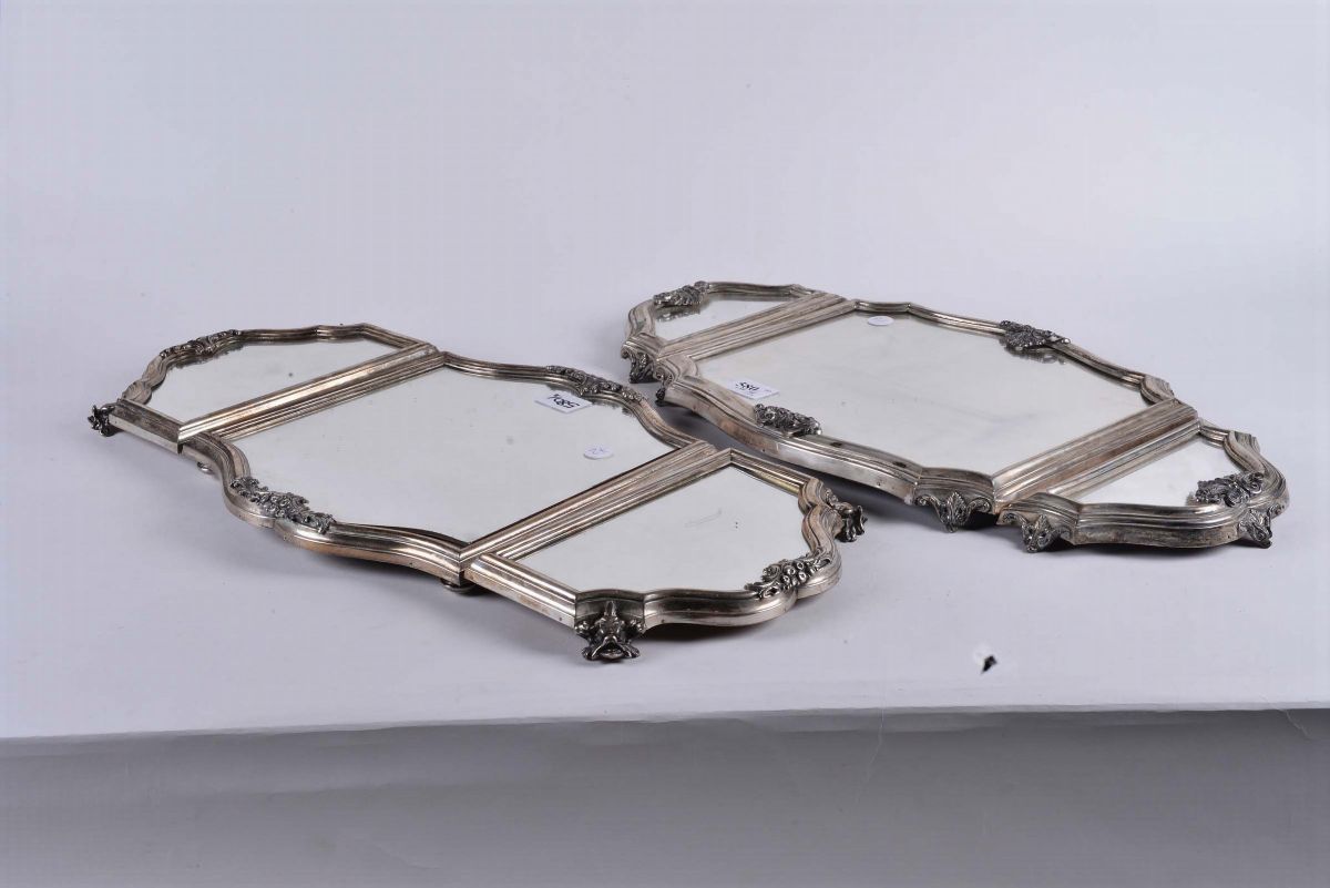 Due centrotavola a specchio con bordi in argento, argenteria italiana del ventennio fascista