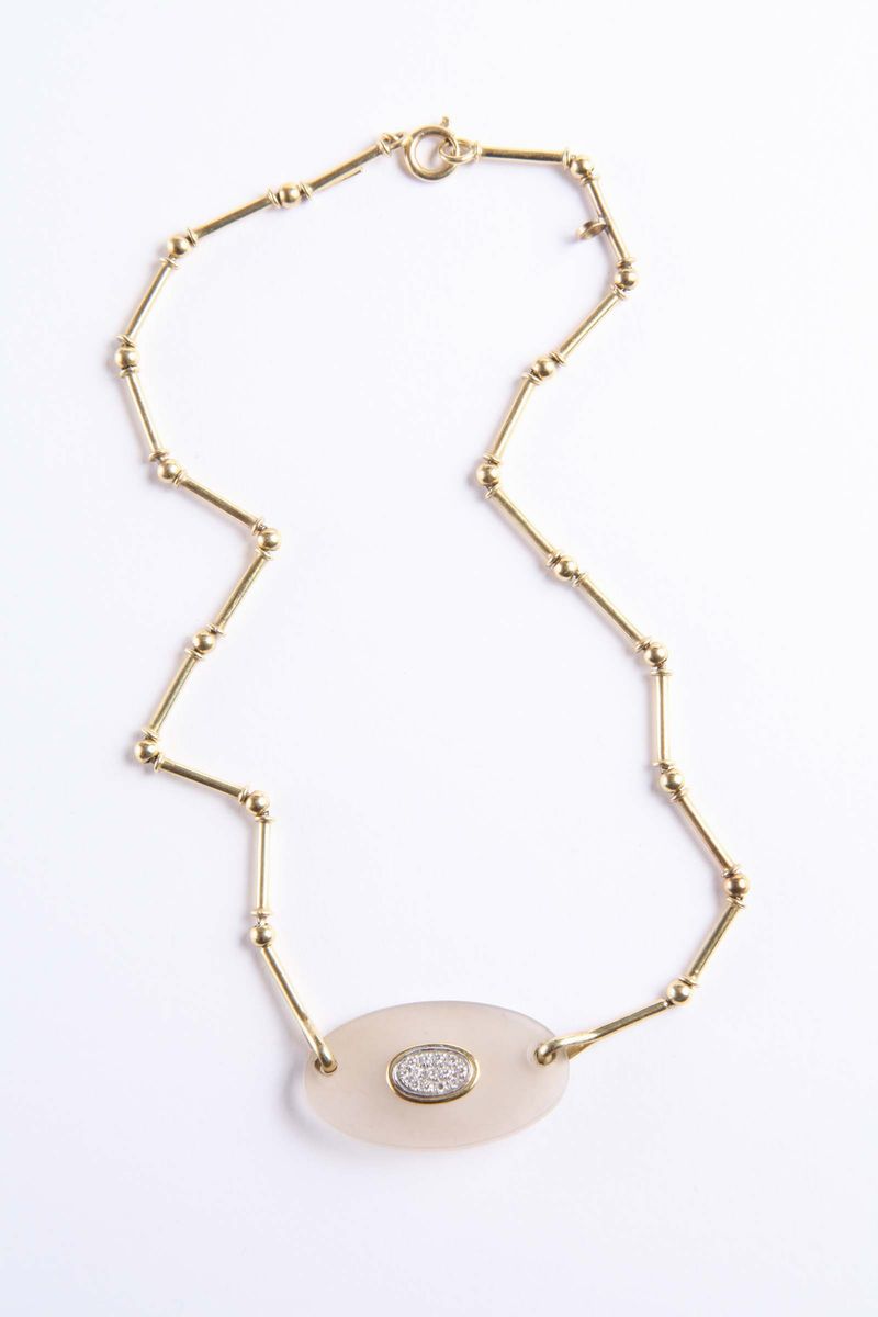 Girocollo con quarzo ialino taglio ovale con centro di diamanti