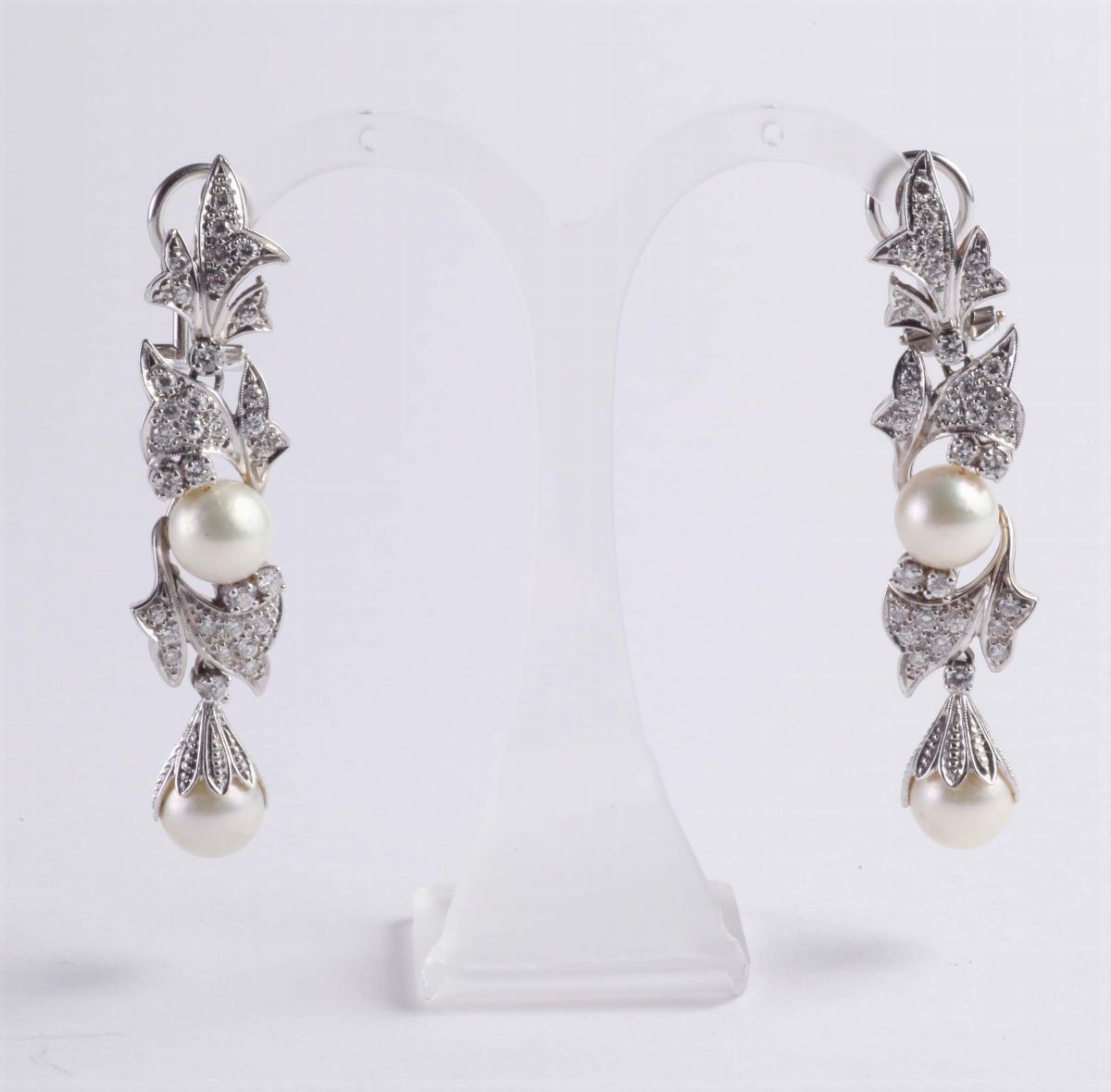 Orecchini pendenti con diamanti e perle