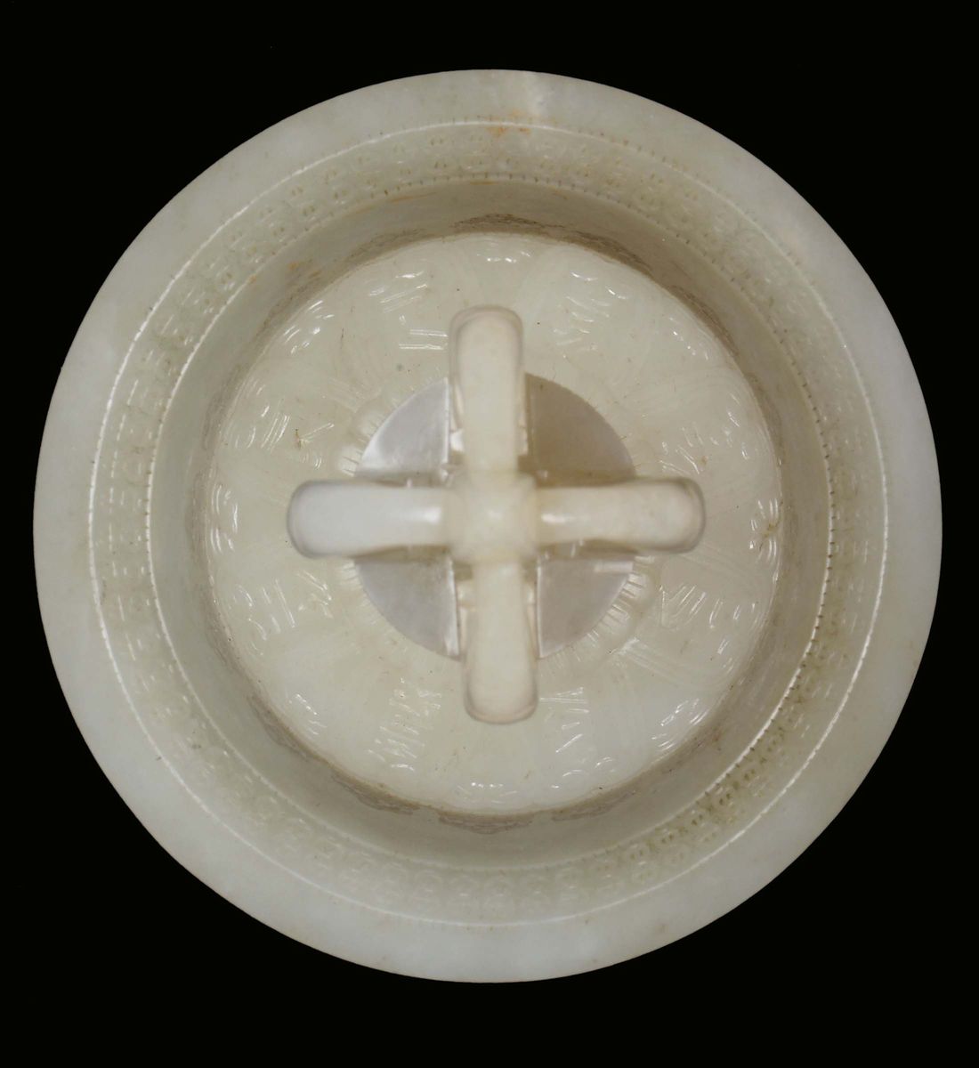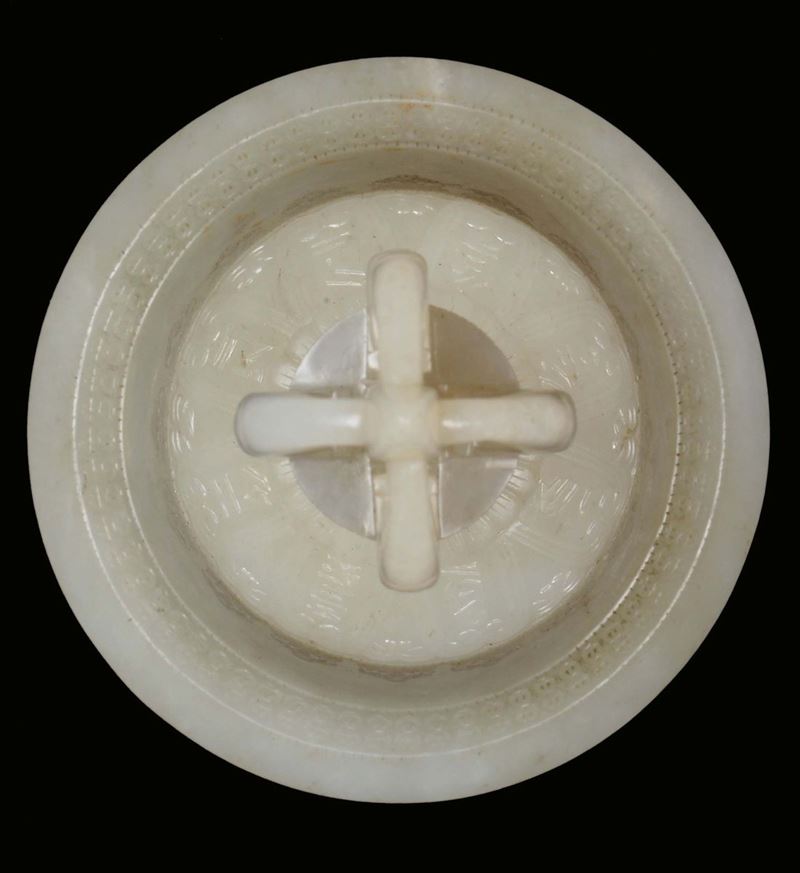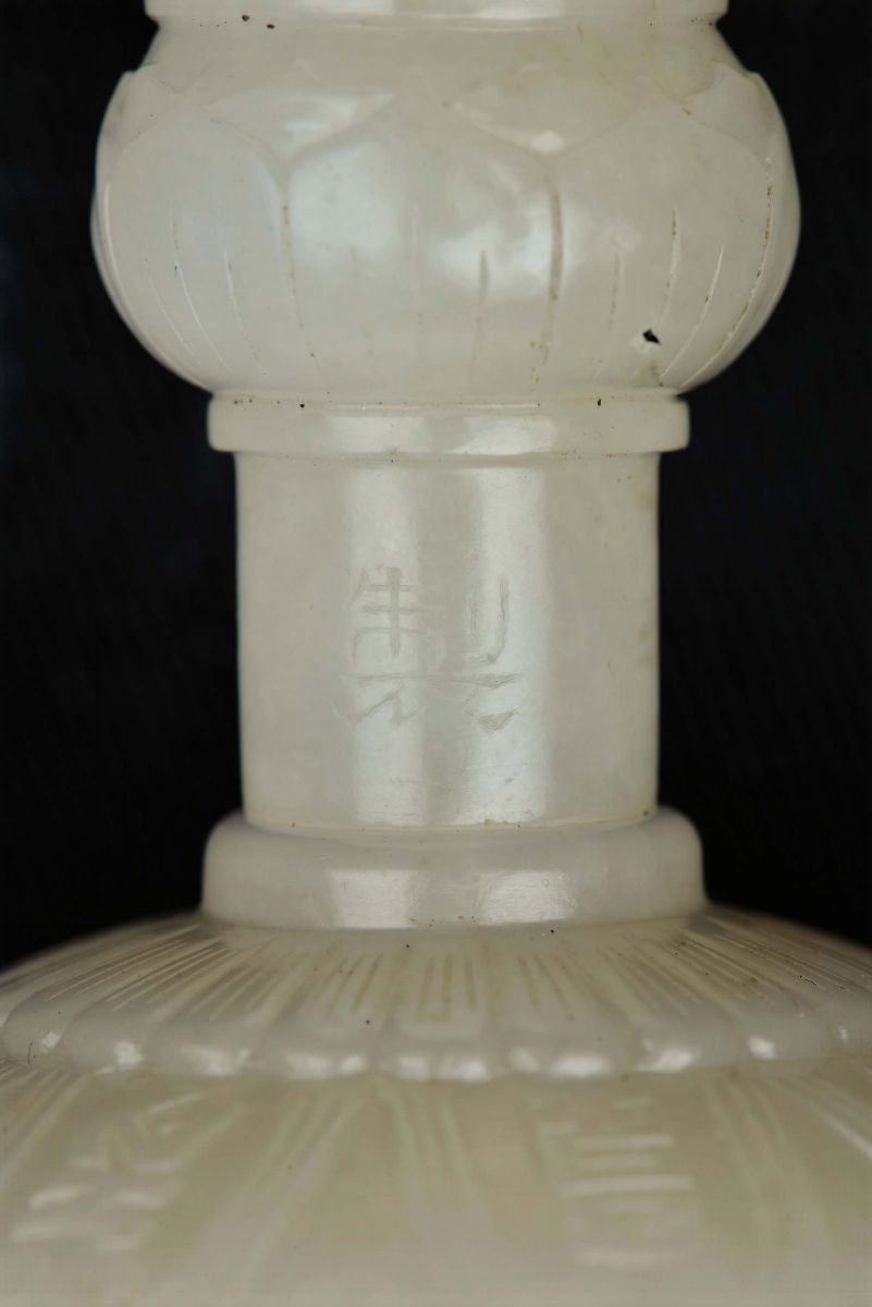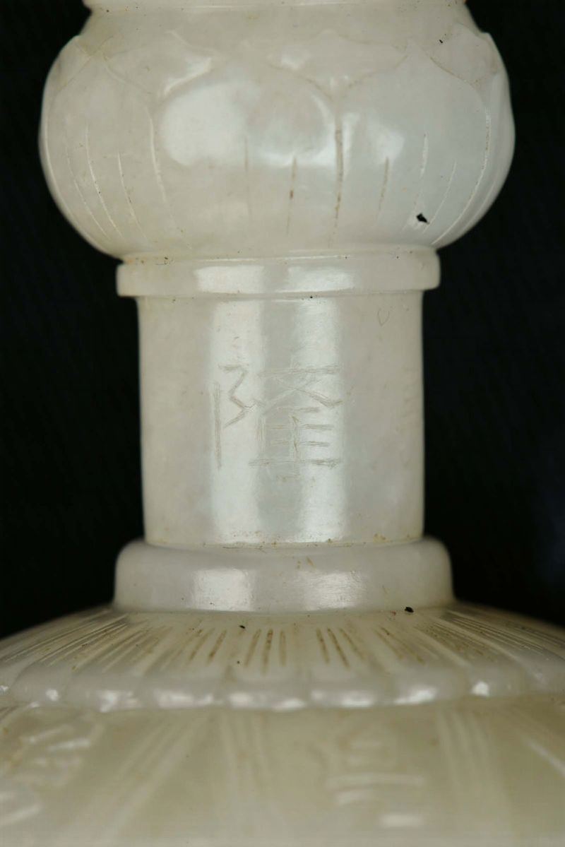 Extraordinary and rare white jade bell or guanta with dorje or vajra of imperial manufacture, both with Qianlong mark and [..]