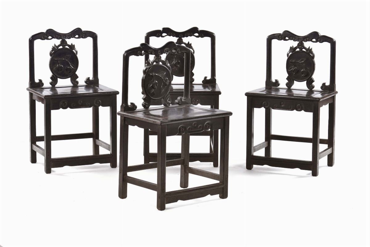 Four Homu wood carved chairs, China, Qing Dynasty, 19th century cm 52x42x52