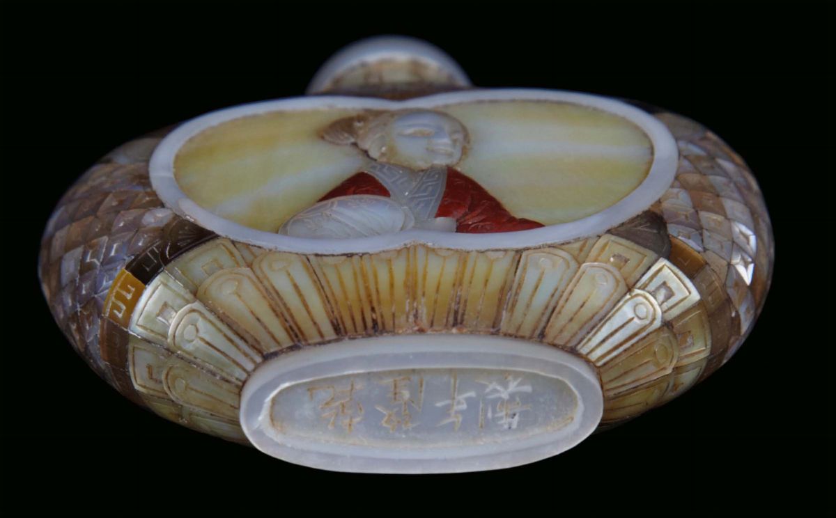 Mother-of-pearl snuff bottle with female profile, China, Qing Dynasty, beginning 19th century four-character post mark Qianlong [..]