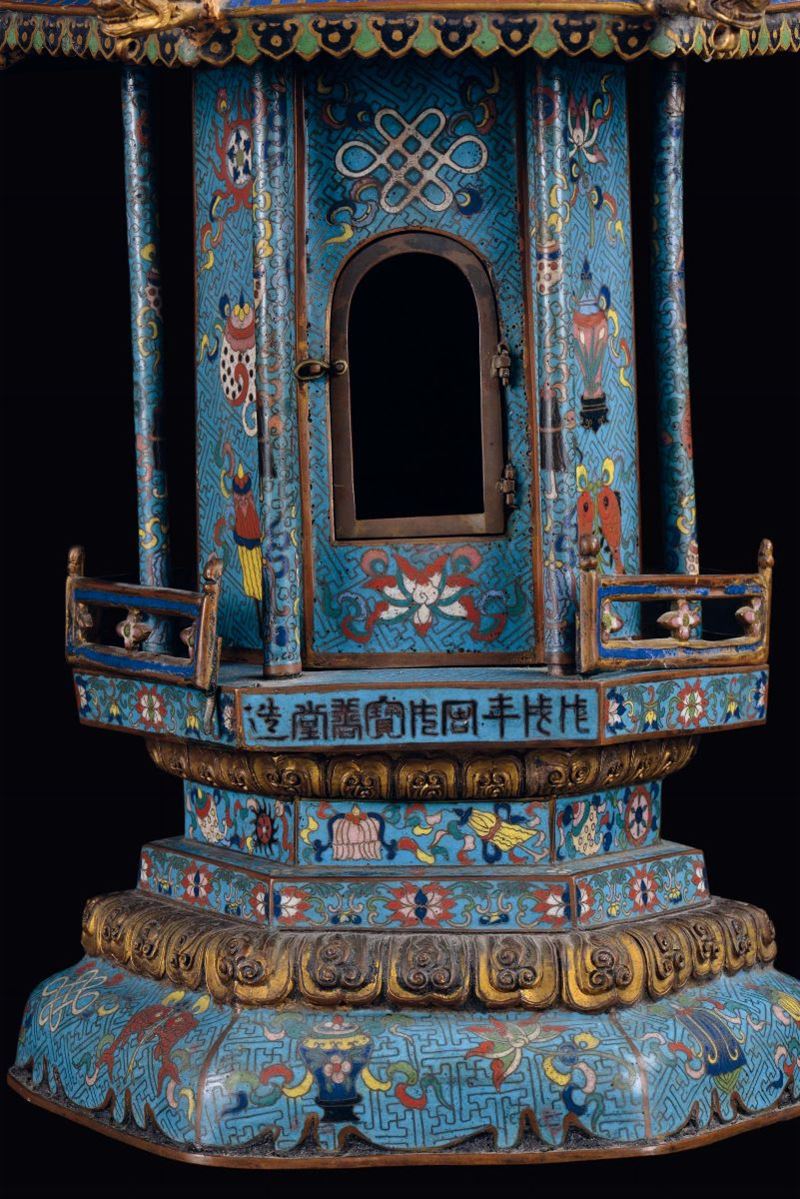 Small gilt bronze and cloisonné enamel pagoda, China, Qing Dynasty, 19th century, cm 32x32x47