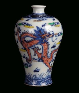 Small polychrome Ducai porcelain vase decorated with dragons, China, Qing Dynasty, 19th century h cm 17, post marked Kangxi on the base