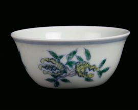 Small polychrome porcelain cup with naturalistic decoration, China, Qing Dynasty, Qianlong Period (1736-1795) post marked [..]