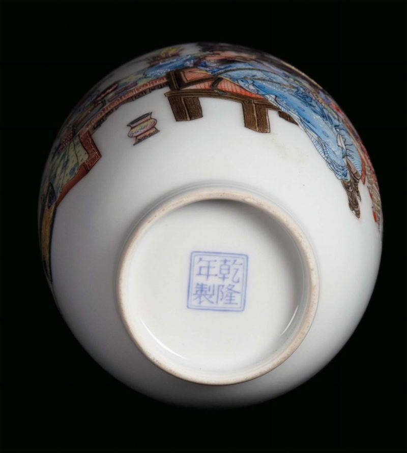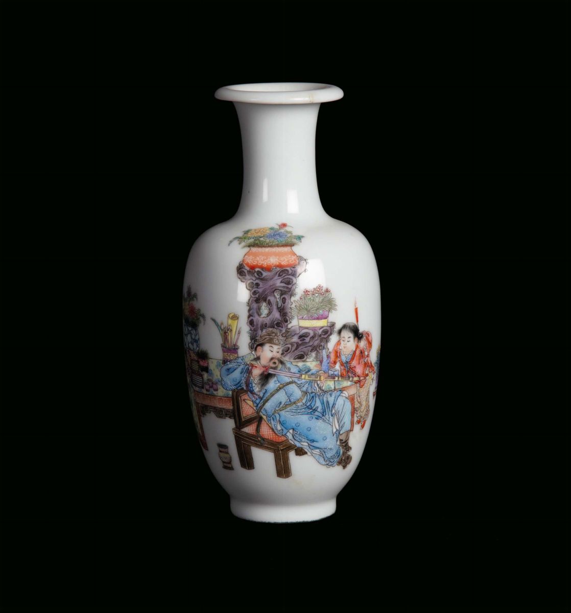 Small white porcelain vase with oriental representation, China, Republican Period, 20th century h cm 21, six-character mark [..]