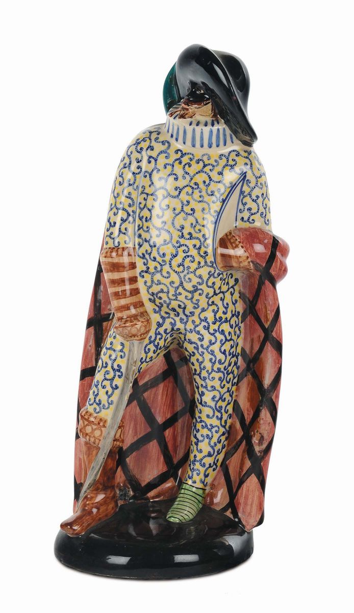 terracotta decorata in policromia sottovernice, della serie Maschere. Sotto la base: Fenice, simbolo grafico della manifattura, Albisola, 1926 circa. Altezza cm 35