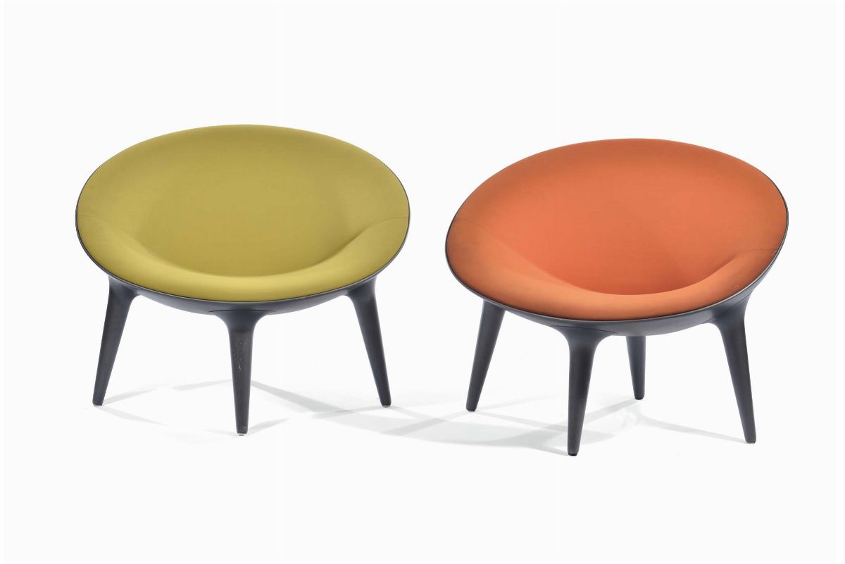 Coppia di poltrone in materiale plastico e rivestimento in tessuto .Produzione Cassina, Italia 2000 ca.
