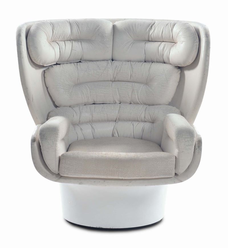 Poltrona modello “Elda” scocca in ABS e rivestimento originale. Produzione Confort design Joe Colombo, Italia 1970 ca., cm 94x95x94