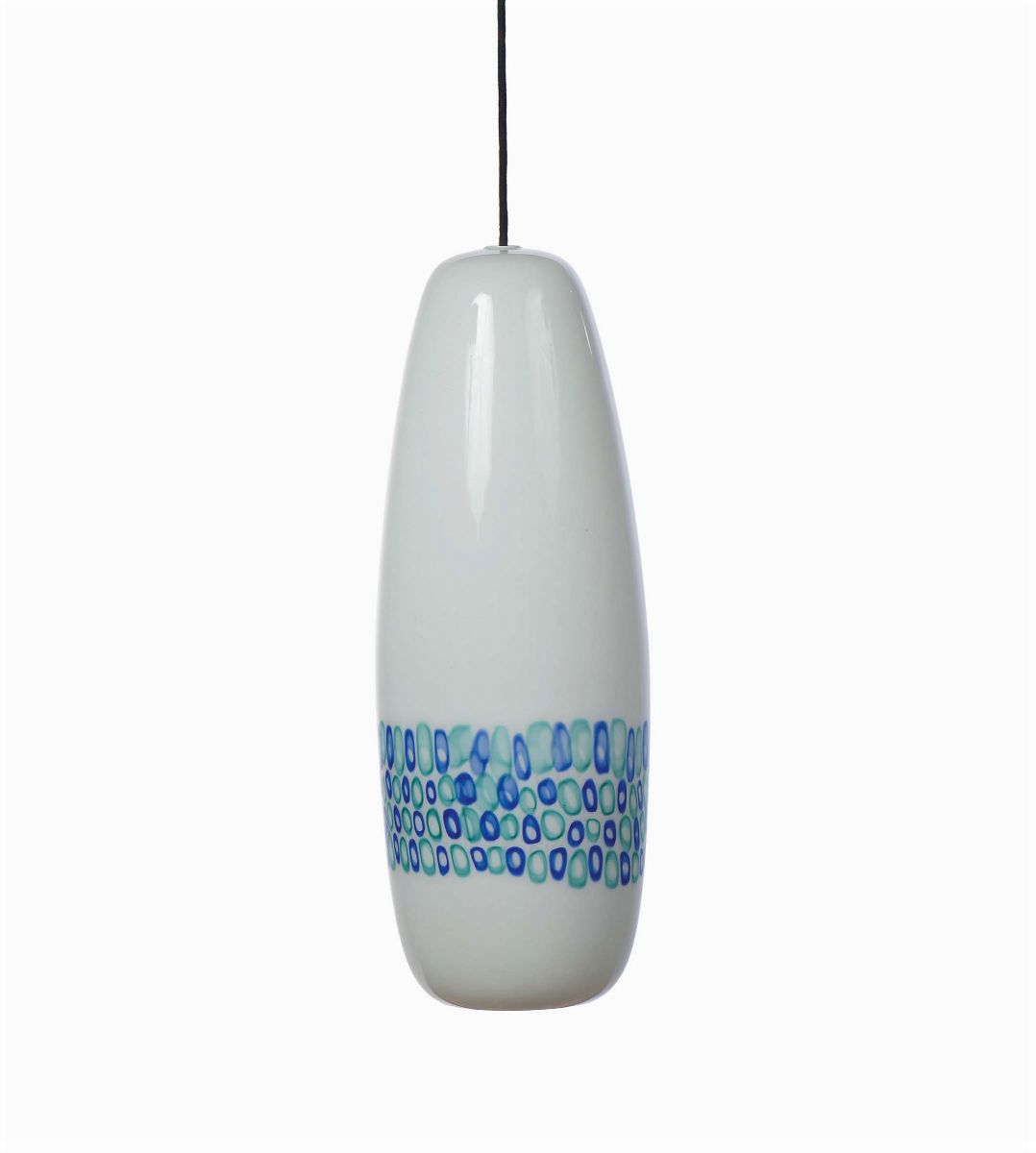 lampadario in vetro di murano e murrine colorate. Prod. Vistosi, Italia 1960 ca., altezza cm 55, diametro cm 20