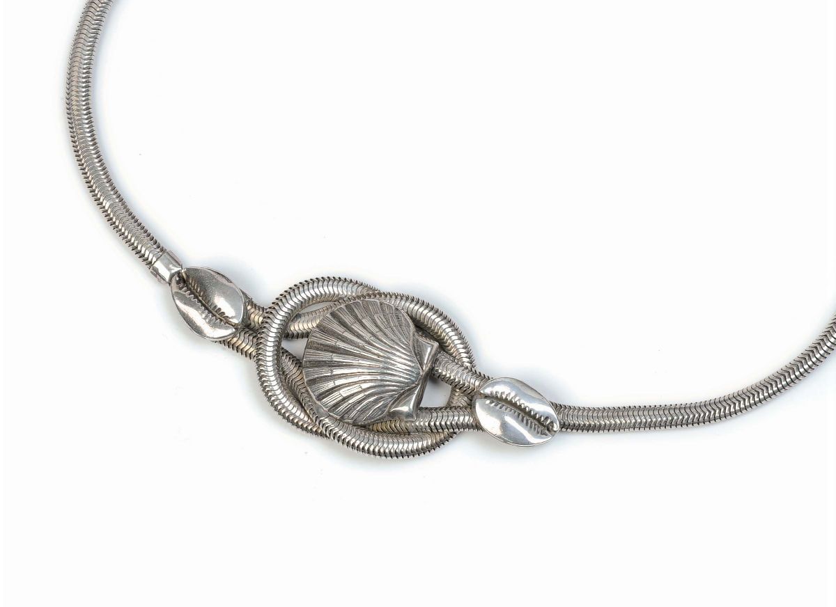 con conchiglia e giro vita a tubo gas in argento, Italia, anni '60 (argento non punzonato 187g.)