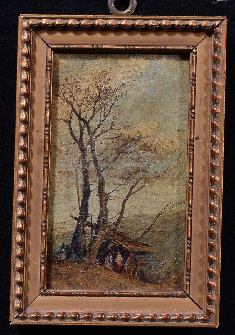 olio su cartoncino, cm 11,5x6,5 e acquerello su carta cm 22x14