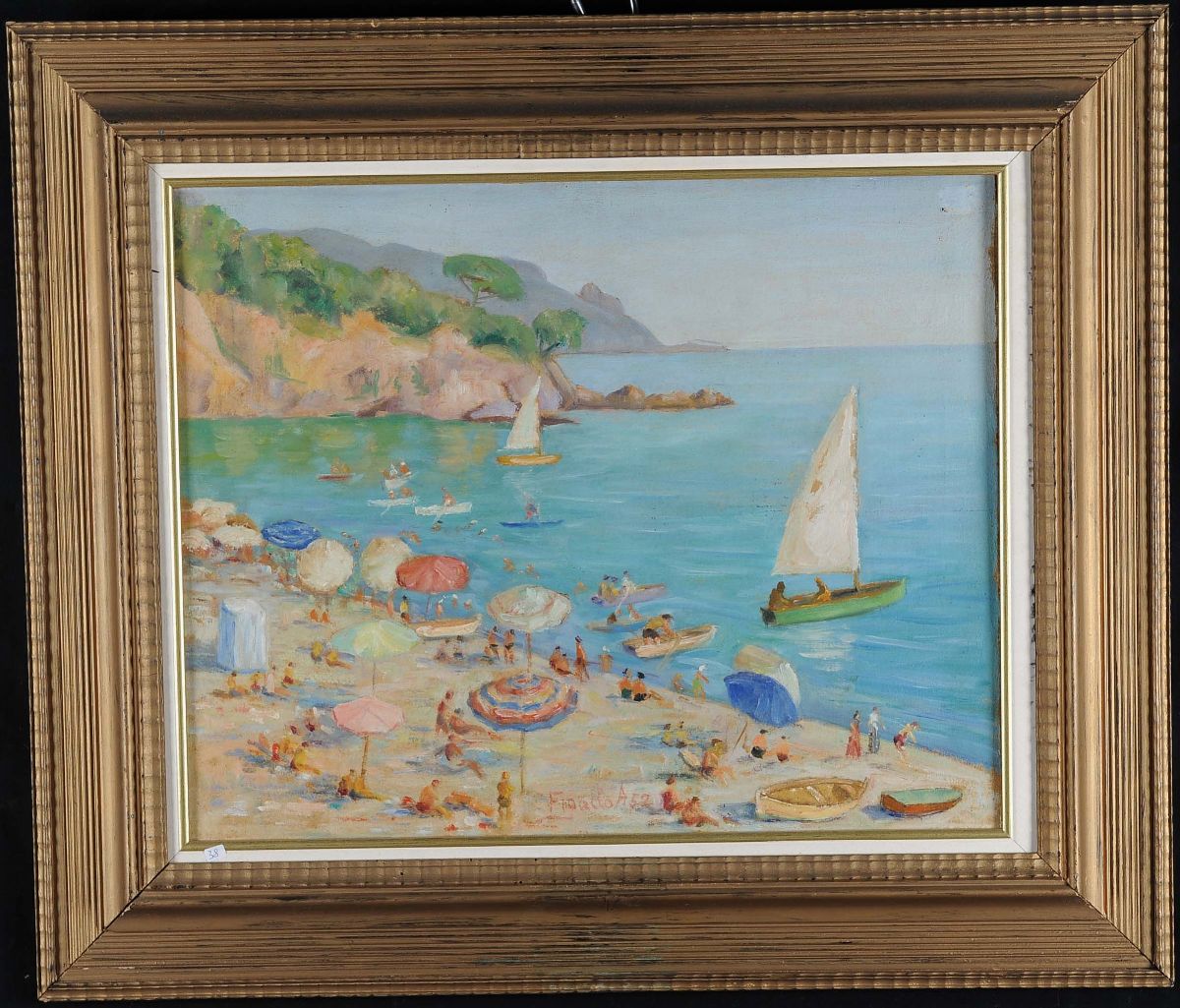 Armando Figallo (1892-1984) Spiaggia con bagnanti, 1952