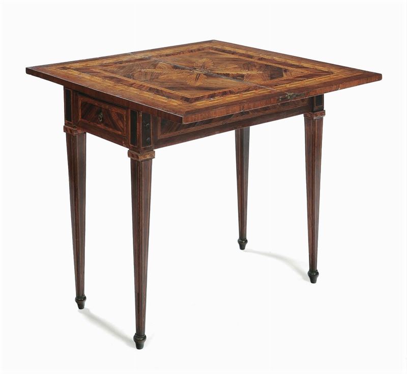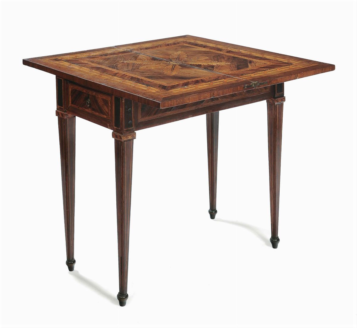 Tavolino da gioco Luigi XVI lastronato in palissandro, Genova XVIII secolo