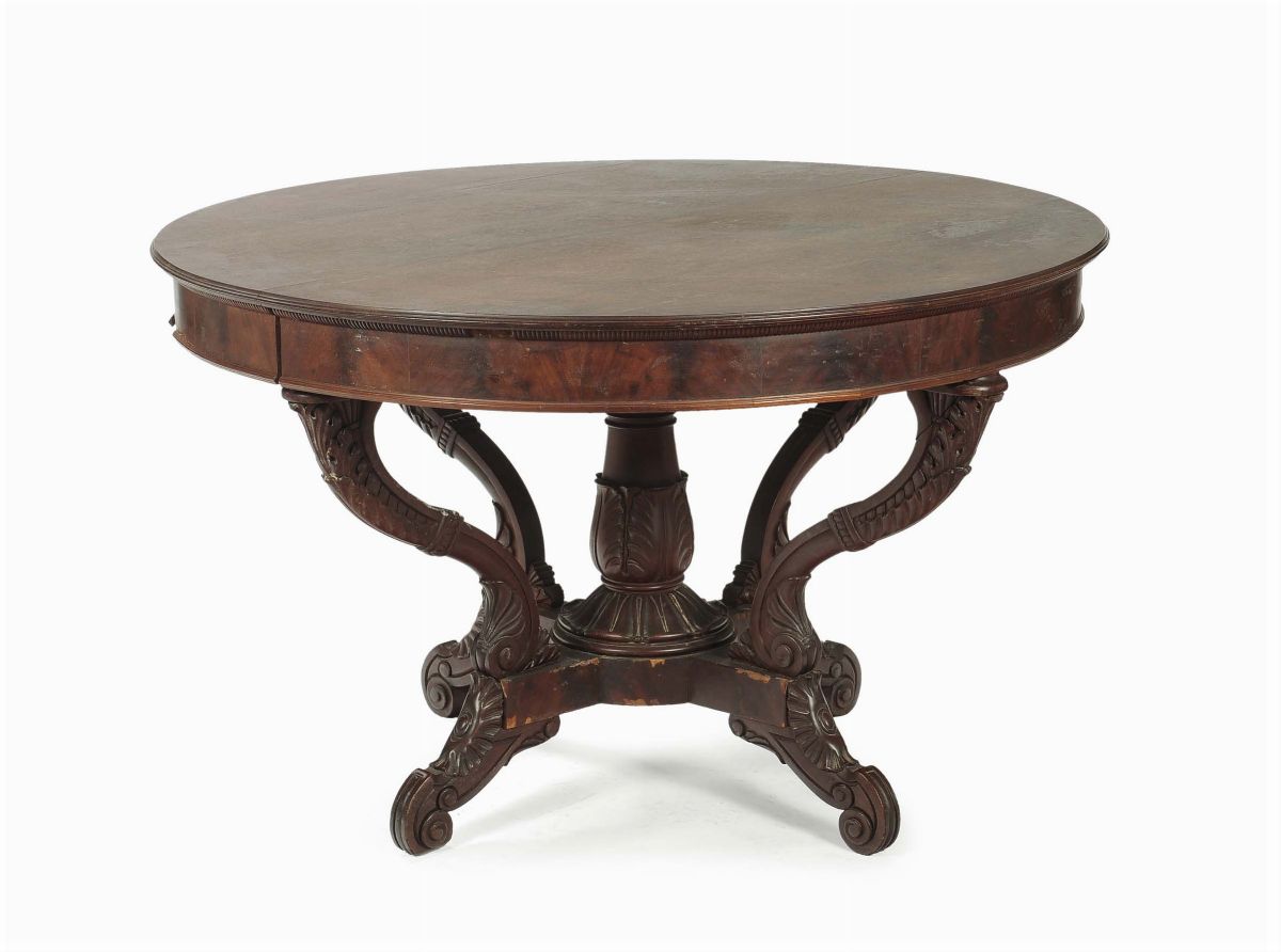 Tavolo a cestello in mogano allungabile, Genova XIX secolo