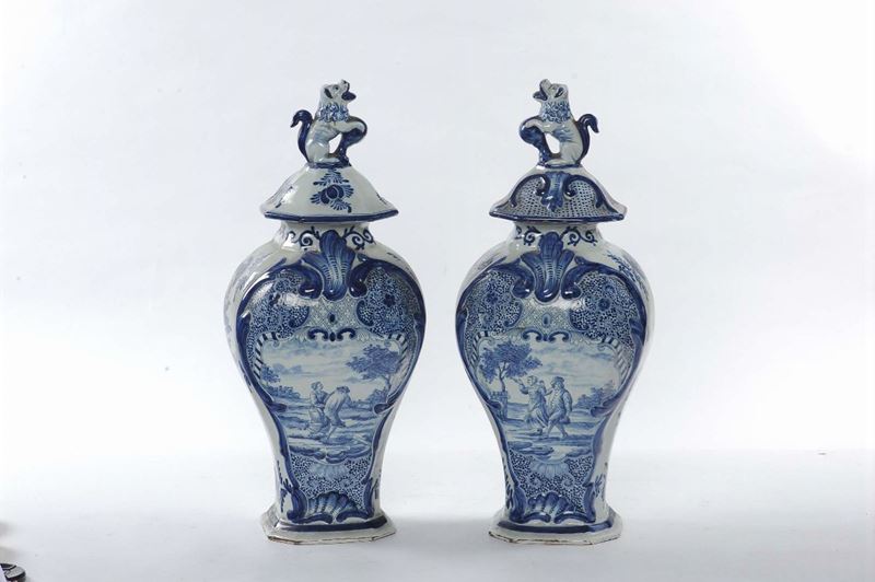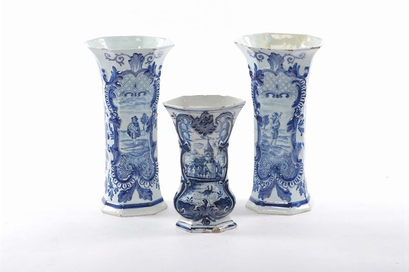 Cinque vasi in maiolica con decoro monocromo blu, Delft