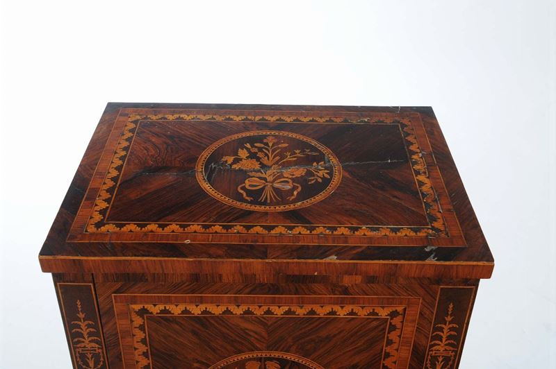 Commode Luigi XVI lastronata ed intarsiata, fine XVIII secolo