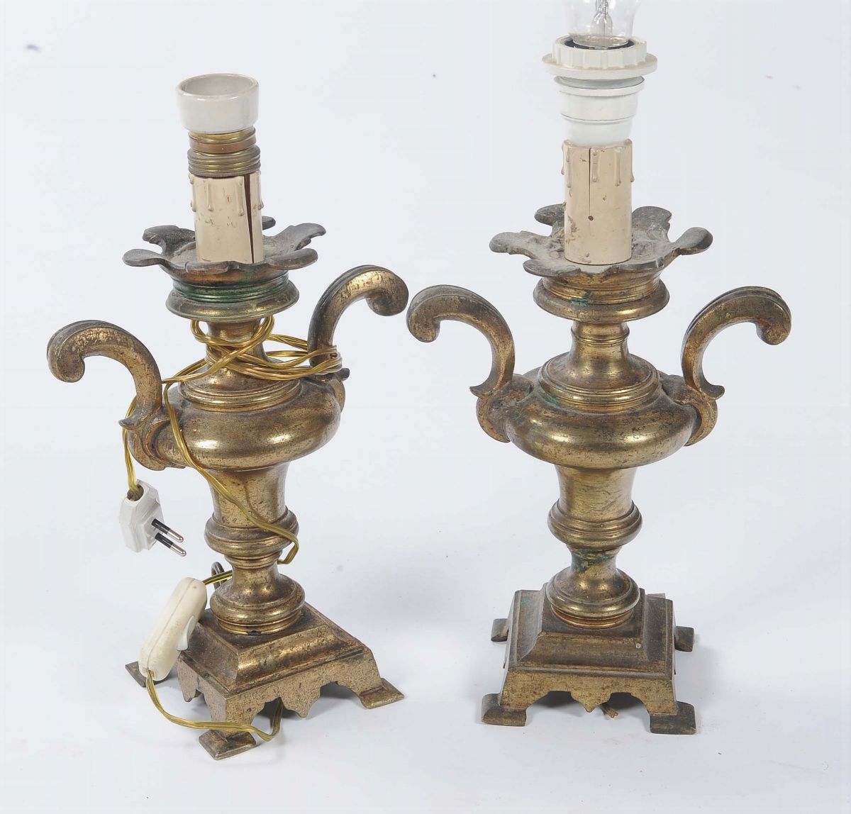 Coppia di lumi in bronzo dorato, prima metà del XVIII secolo