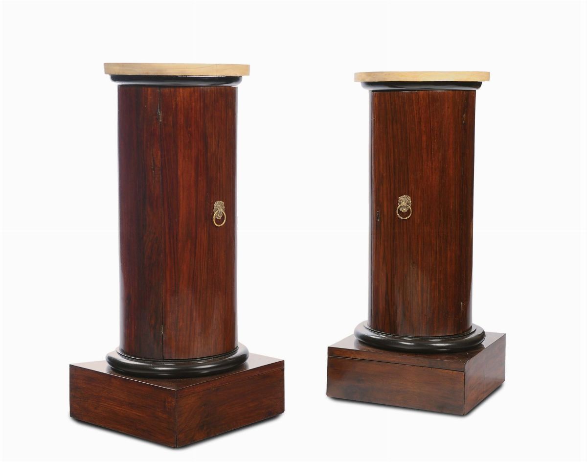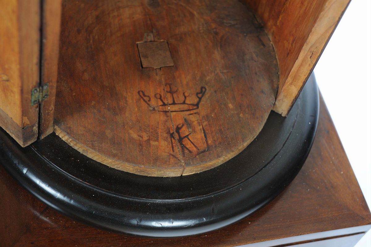 un cassetto ed uno sportello sul fronte, piano in scagliola, altezza cm 88, diametro cm 37