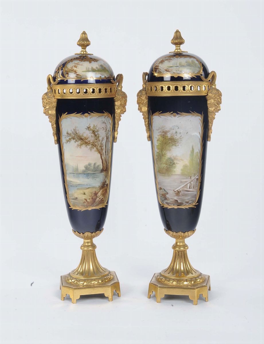 Coppia di vasi in porcellana policroma, Sevres XIX secolo