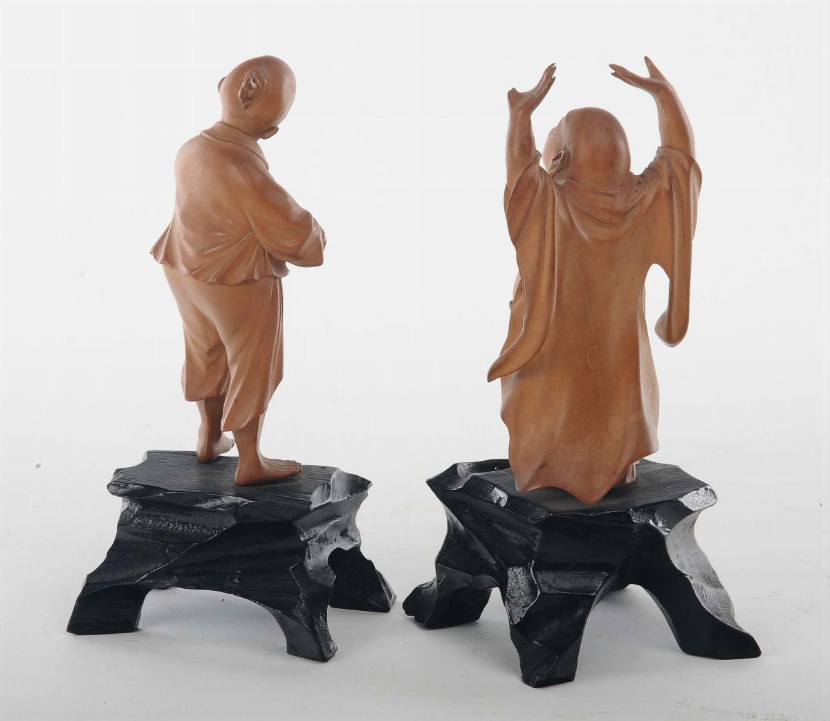 Due figure in legno chiaro raffiguranti dignitari, Cina XX secolo
