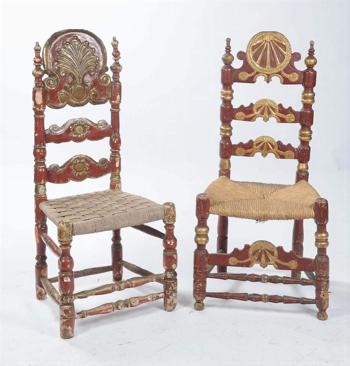 legno intagliato laccato e dorato, seduta in paglia, montanti torniti (difetti e differenze)
